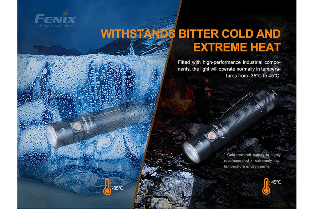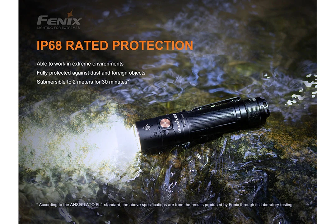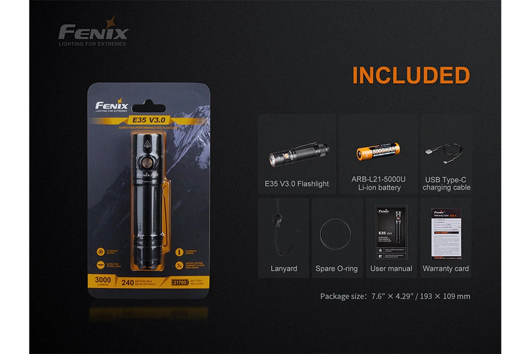 Portable and Powerful are the only things that comes to mind when you talk about the all-new Fenix E35 V3.0. This new and improved version only measures 4.6 inches and length and has a total of 3000 Lumens. What makes the new E35 more impressive is the flashlight beam distance of 787 feet. Unlike the previous models, the latest version of the E35 is packed with new features, including a pocket clip, battery level indicator, and an ultra-thin optical lens. Other great features are the SST70 LED and 21700 battery power, which is included with the flashlight.