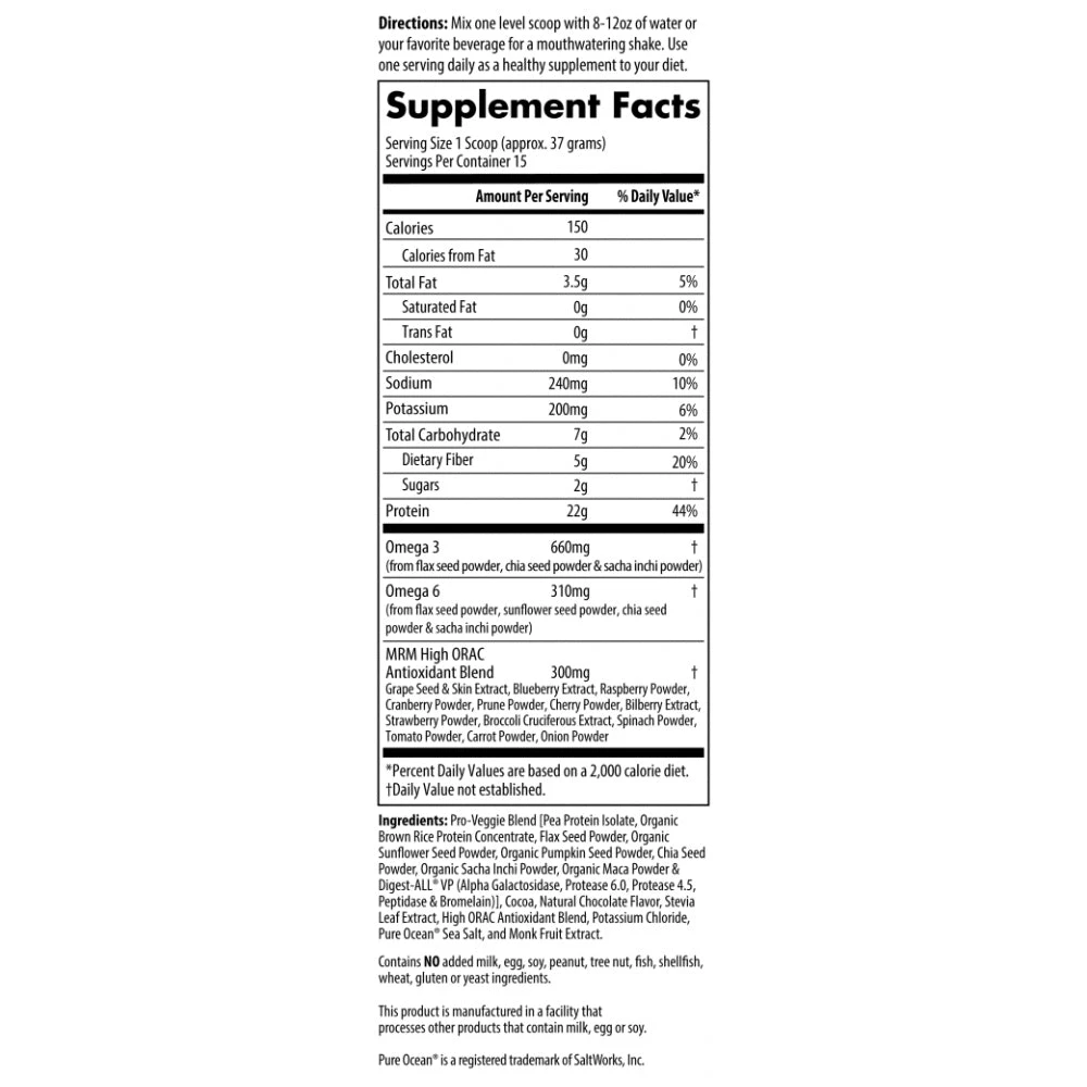 MRM’s Veggie Protein is an all natural vegetarian super food complex designed to meet your everyday protein needs. Each ingredient was chosen for its ability to deliver maximum nutrients while providing a smooth pleasant taste.