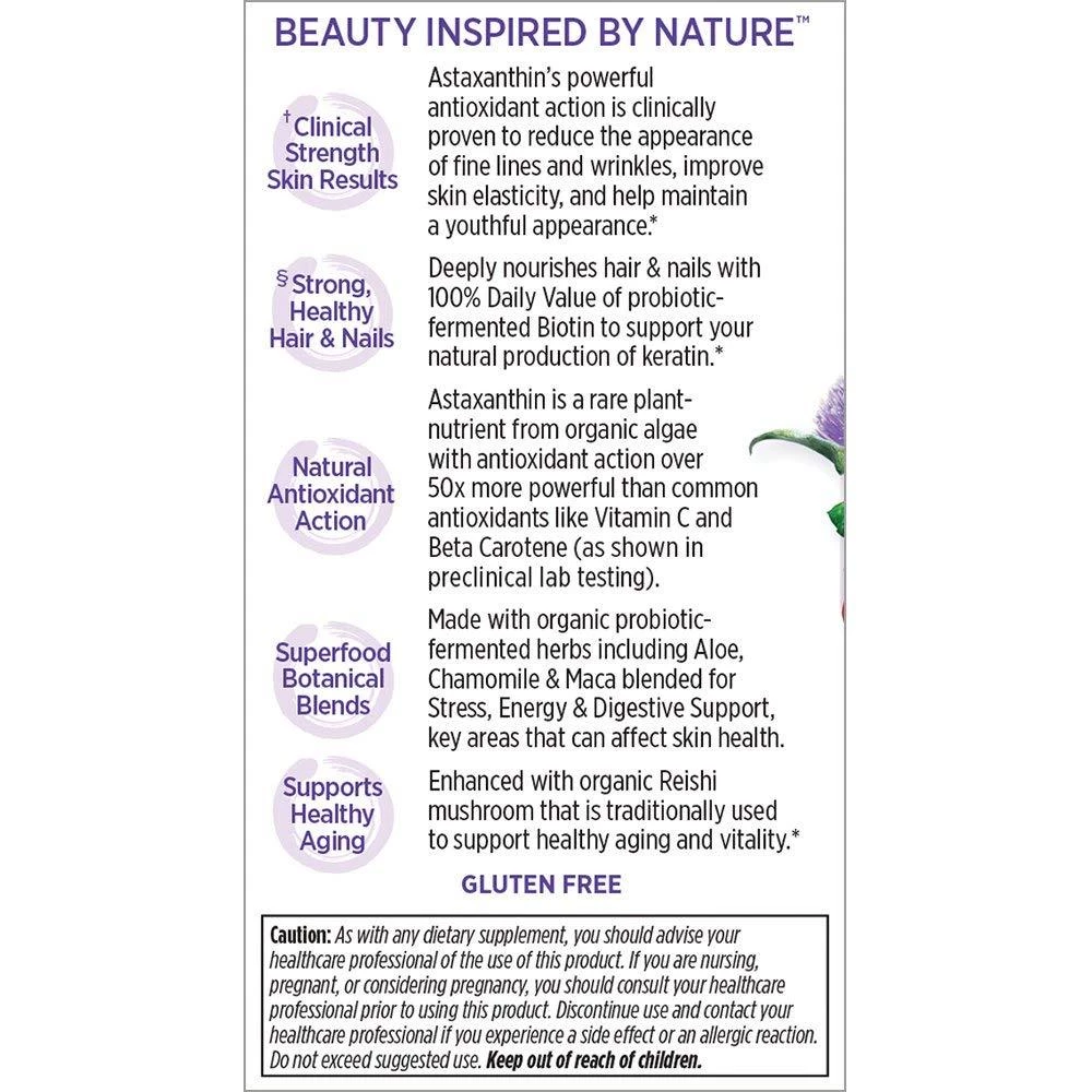 Perfect Hair, Skin & Nails combines probiotic-fermented herbs and Astaxanthin, a rare plant-nutrient from organic Algae grown with water originating from the Himalaya Mountains. It deeply nourishes hair & nails by supporting your natural production of keratin with 100% Daily Value of fermented Biotin.*