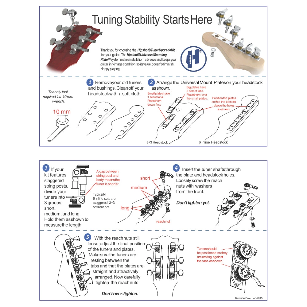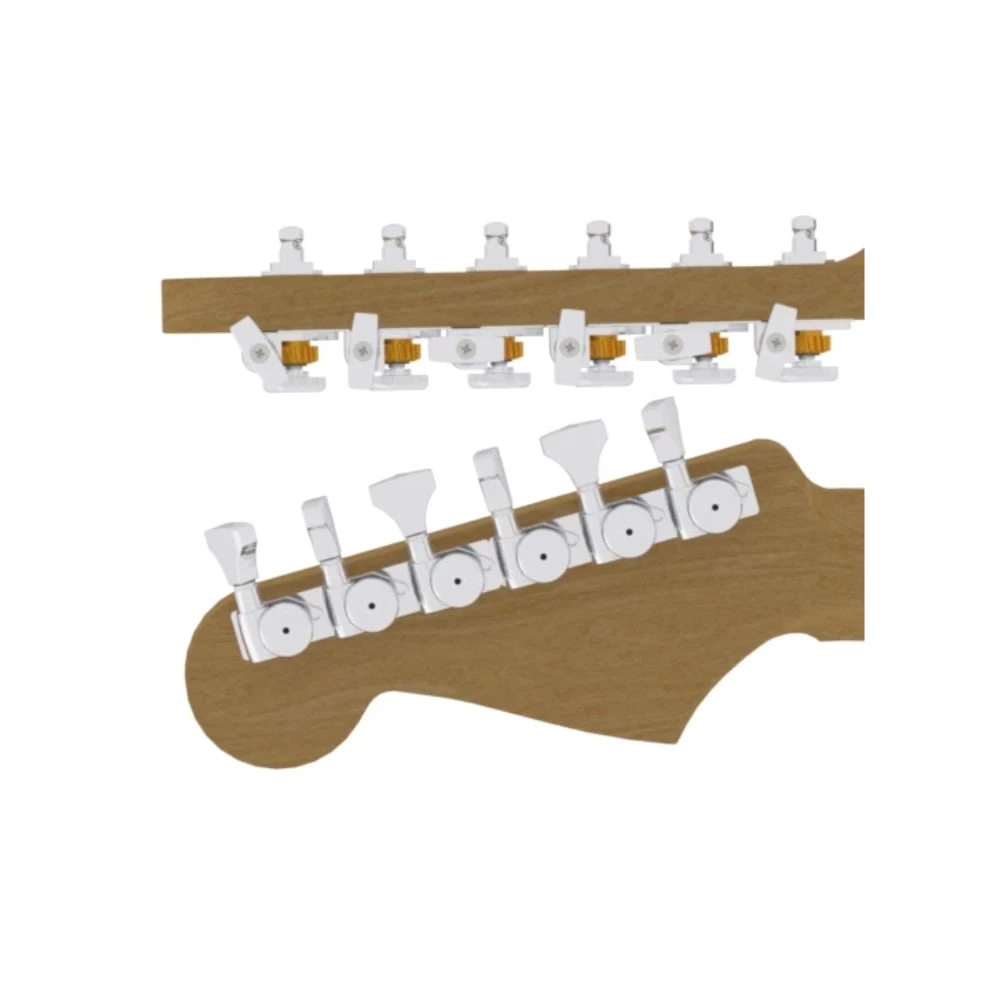 - Standard tuners retrofit guitars with 25/64″ (10mm) headstock holes