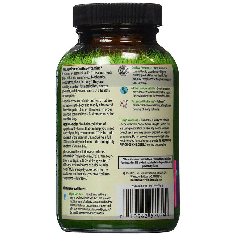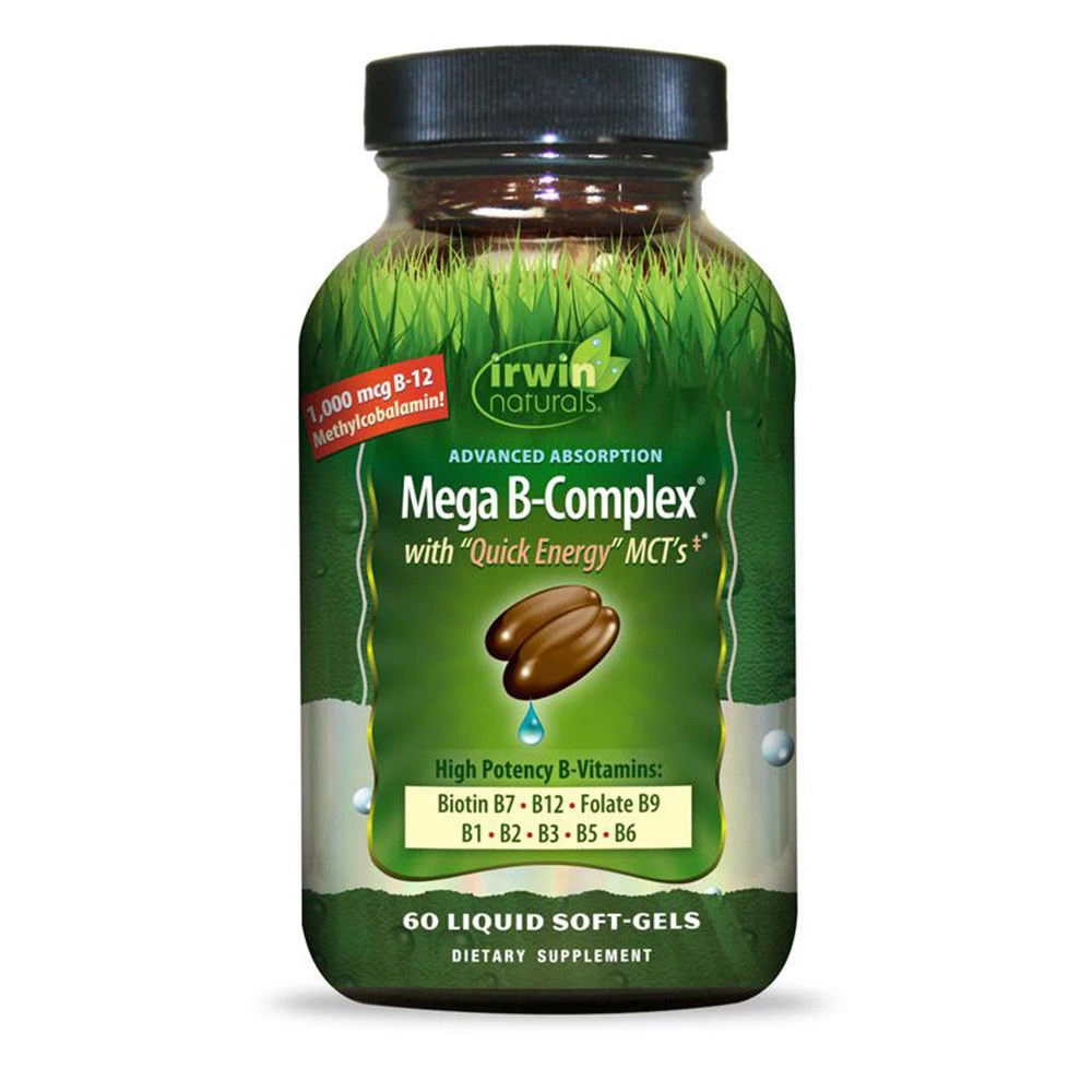 Irwin Naturals Mega B-Complex with Quick Energy MTC’s, Vitamin B – 60 Softgels