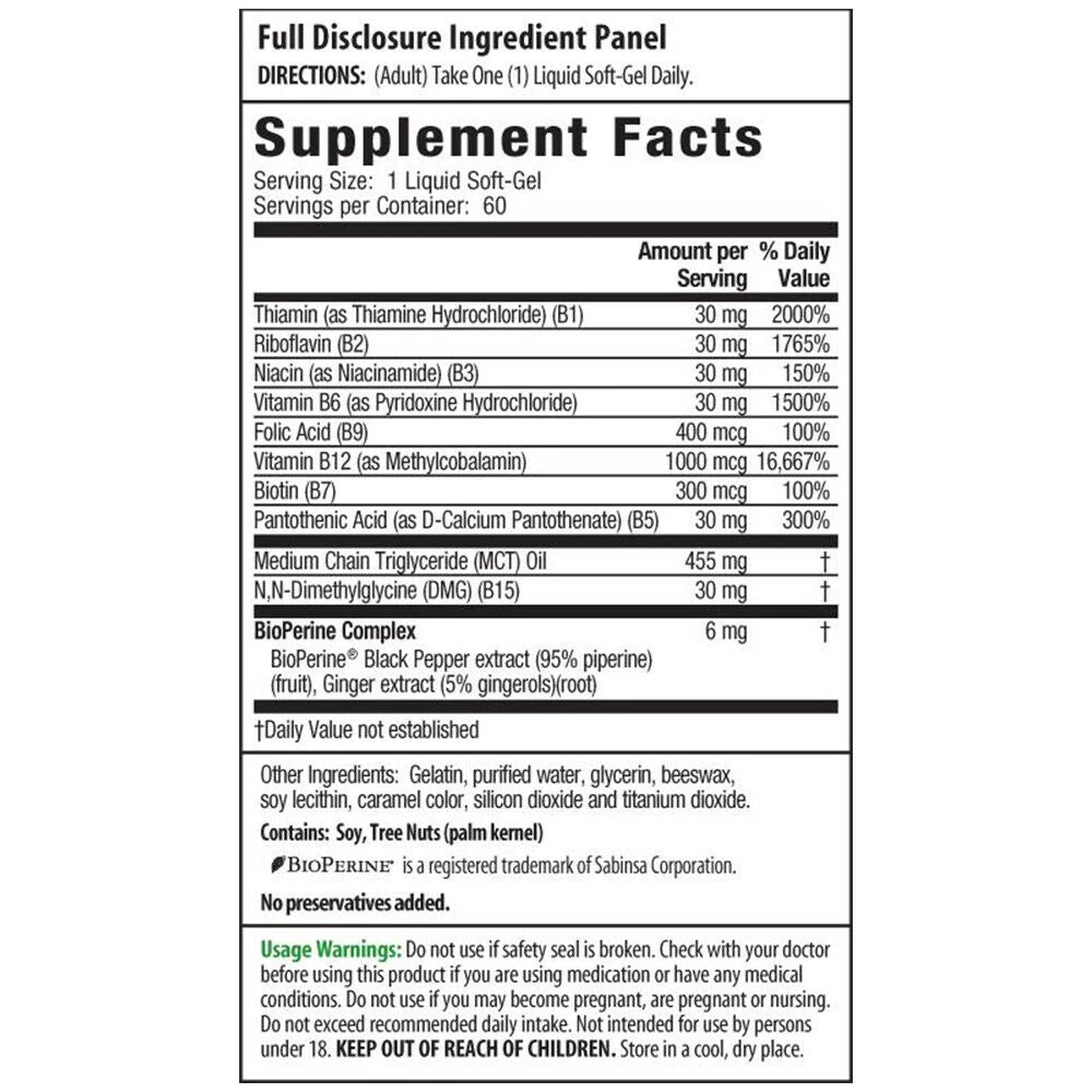 This advanced formulation also includes Medium Chain Triglycerides (MCTs) as the foundation of our Liquid Soft-Gel delivery system.* MCTs are a preferred source of quick cellular energy.* MCTs are rapidly absorbed into the bloodstream and immediately converted into energy at the cellular level.*