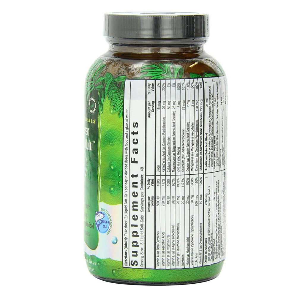 Men’s Living Green Liquid-Gel Multi combinines powerful botanicals and essential nutrients, this is not a one-size-fits-all formula’ it’s targeted to benefit the unique nutrition profile of men.* For example, it delivers Pumpkin Seed Oil and Saw Palmetto.