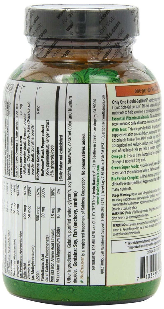 Irwin Naturals Only One Liquid-Gel Multi with Iron – 60 Liquid Softgels