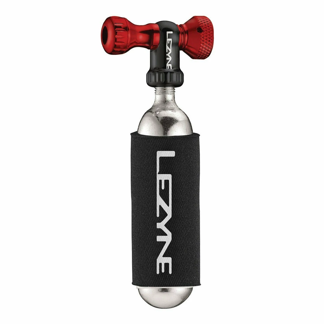 The Lezyne Control Drive CO2 system delivers complete control at your fingertips. The CNC machined aluminum head has durable brass internals and a control knob that lets you easily control the air flow. Twin Slip Chuck head presses on to Presta and Schrader valves. Neoprene sleeve insulates hand from cold during discharge.