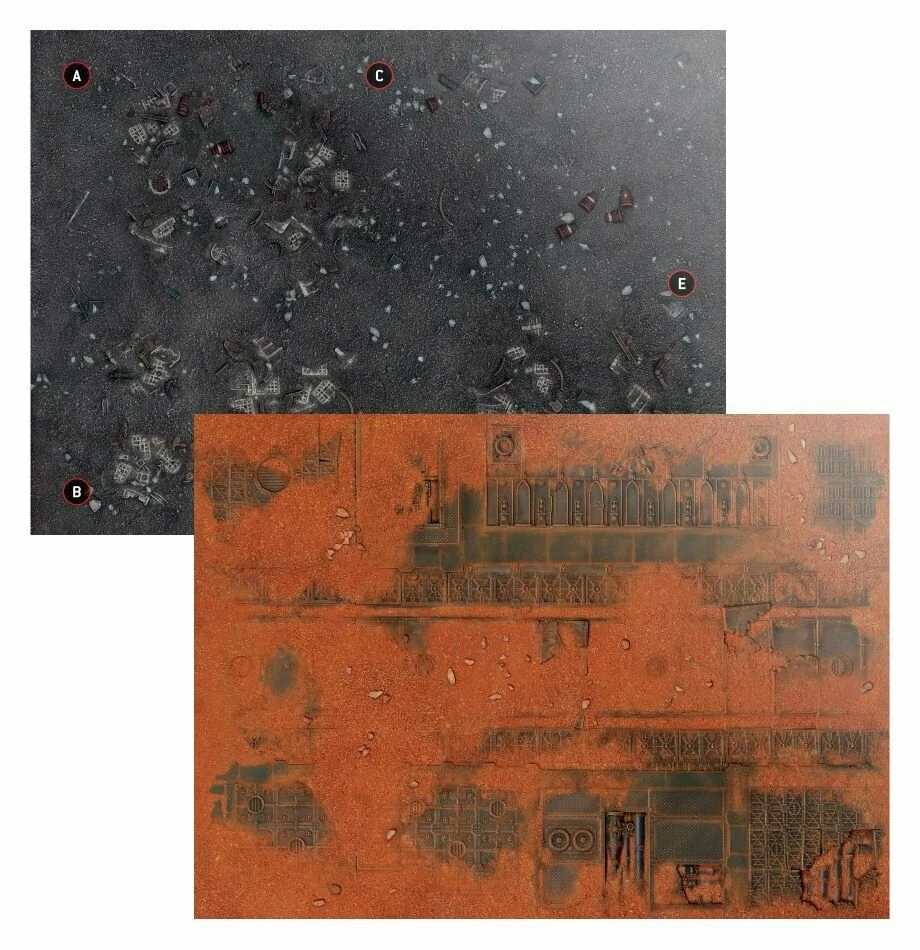 - A 30″ by 22.4″ gaming boardΒ β Transform any kitchen table into an appropriately grim, dark warscape! The gaming board also displays several lettered markers designed to work alongside the missions in the Command Manual.