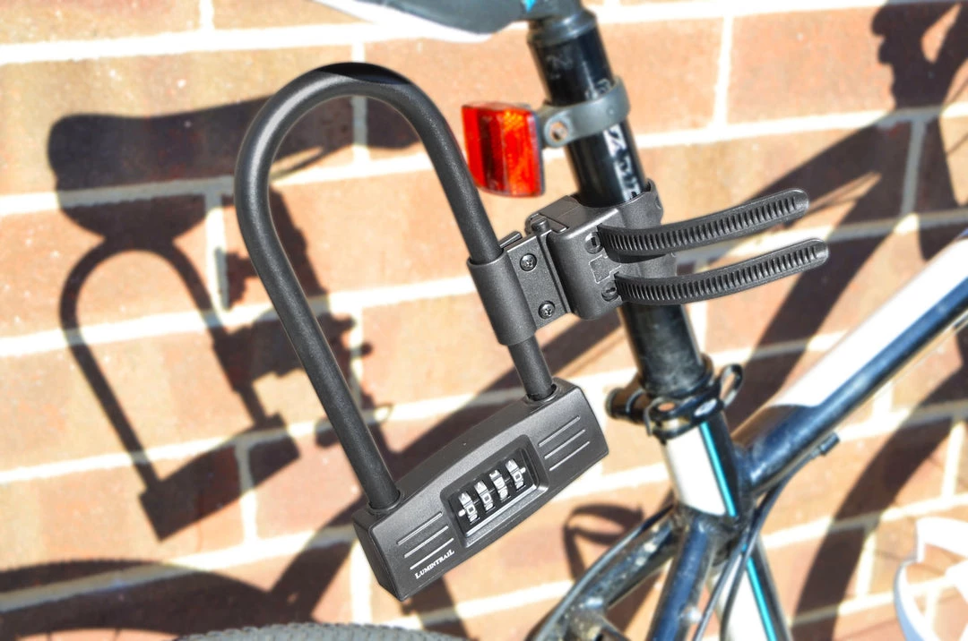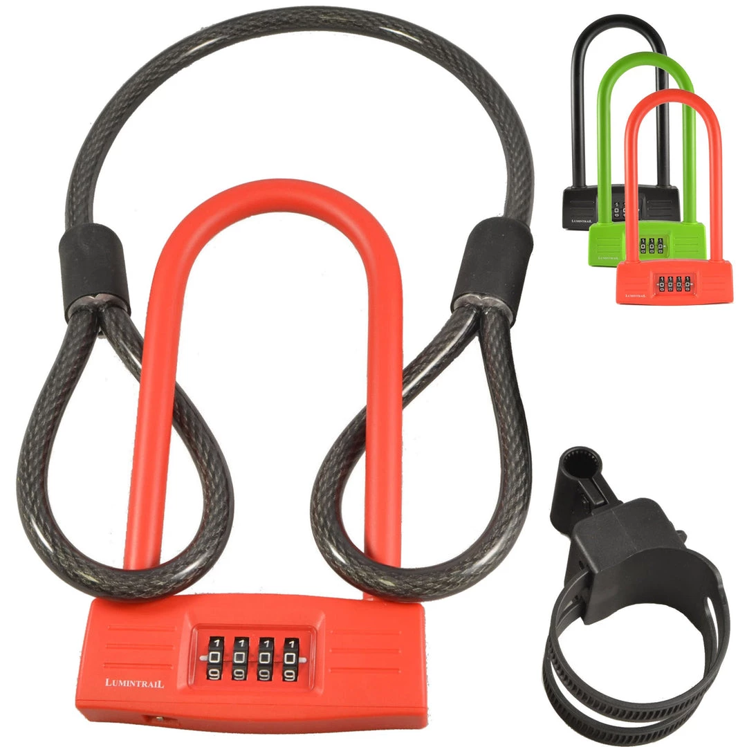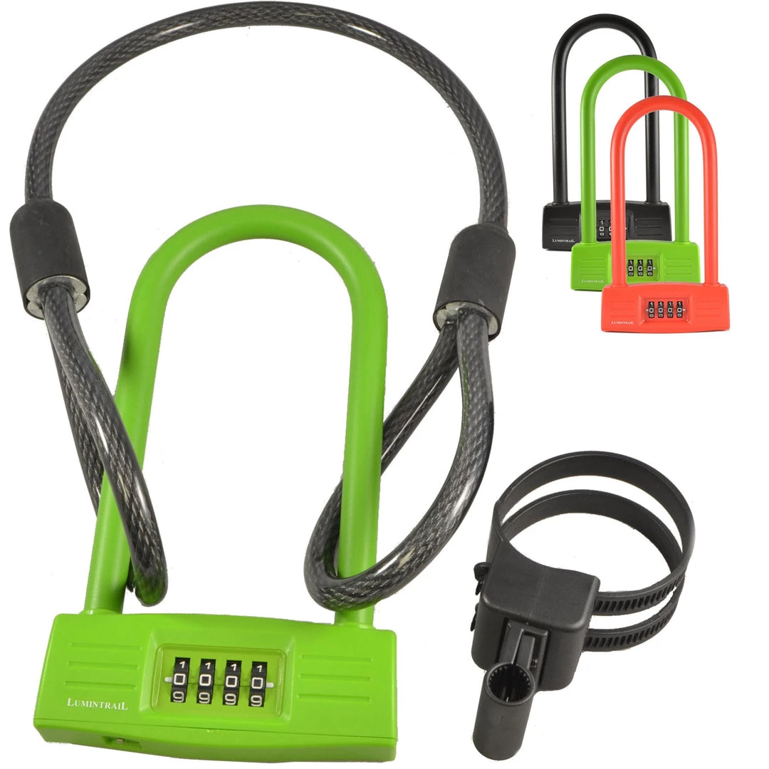 The Lumintrail Good Security U-Lock offers both a user-settable combination lock with the added strength and dependability of a U-Lock to ensure the highest standard of protection for your bike. Includes a frame mounted carry bracket to ensure your lock conveniently travels with you at all times. Extend the security of your lock with the optional 4’ (2.5’ usable) looped Kevlar braided steel cable. Loop through tires, frame and helmets for added security.