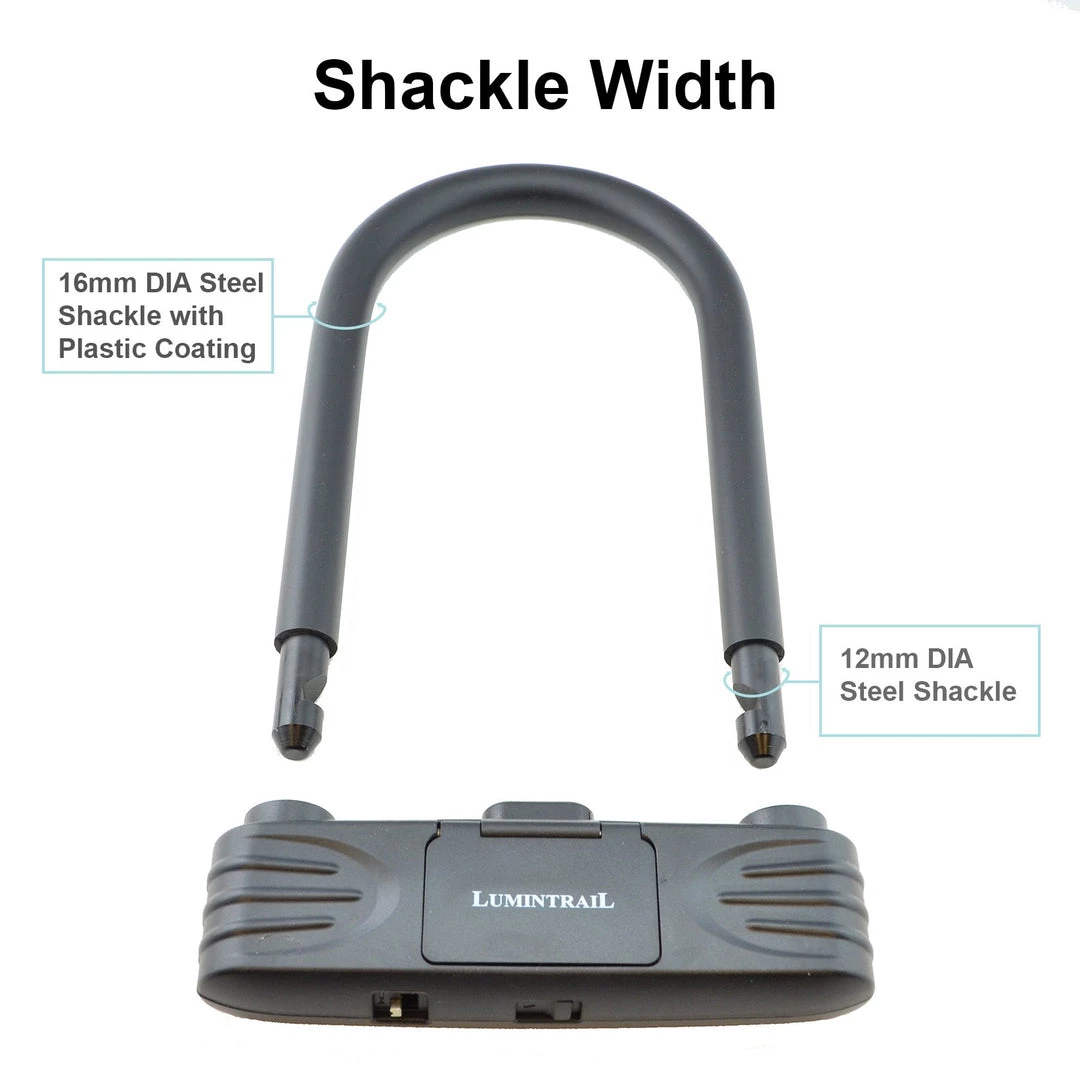 The Lumintrail heavy-duty combination u-lock with 4-digit combination provides the highest standard of protection for your bike. Durable 16mm steel shackle resists cutting, prying, or jacking. Dust cover design provide extended product life. Easy to use 4-digit resettable lock* gives you convenient key-less access while allowing for thousands of combinations.