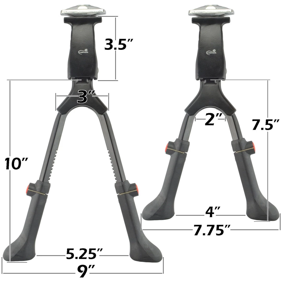 The Lumintrail Double Leg Center Mount Kickstand is a perfect choice for supporting heavier bikes or loads. It holds the bike upright, instead of to the side, making it perfect for repairs and maintenance. With an easy push button latch design to adjust the length of the kickstand and allow for on the go adaptability you can adjust the kickstand without tools, anytime, anywhere.