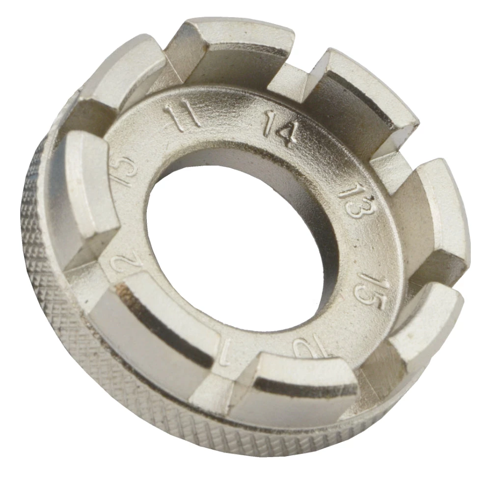 - 8 cut open design, suitable for spoke nipples including sizes 10G (5mm), 11G (4.4mm), 12G (3.96mm), 13G (3.45mm), 14G (3.35mm), 15G (3.23mm).