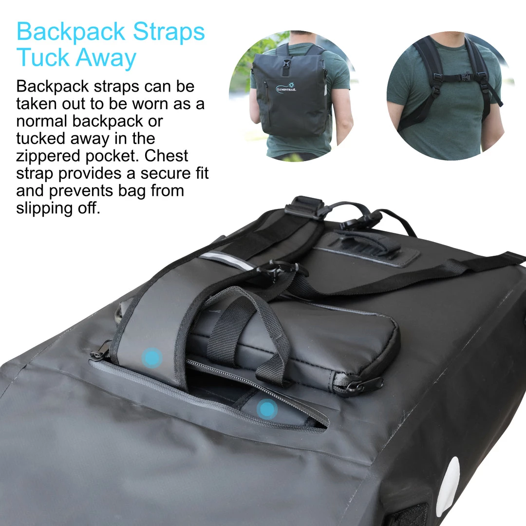 - READY FOR ADVENTURE: Ready for the daily commute, whether you are walking or riding this pannier or backpack is suitable for any adventure. The padded straps make it comfortable on the shoulders and the quick attachment system makes it easy to attach to most rear bike racks