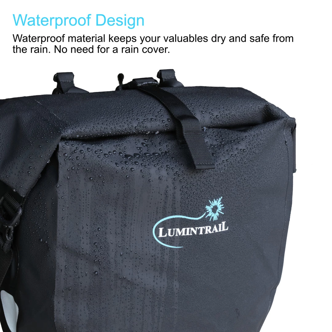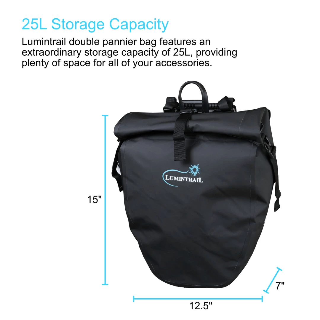 Made from a durable 500D PVC material the Lumintrail Bike Pannier Bag has a spacious 25L capacity with a waterproof designing making it the ultimate traveling companion.