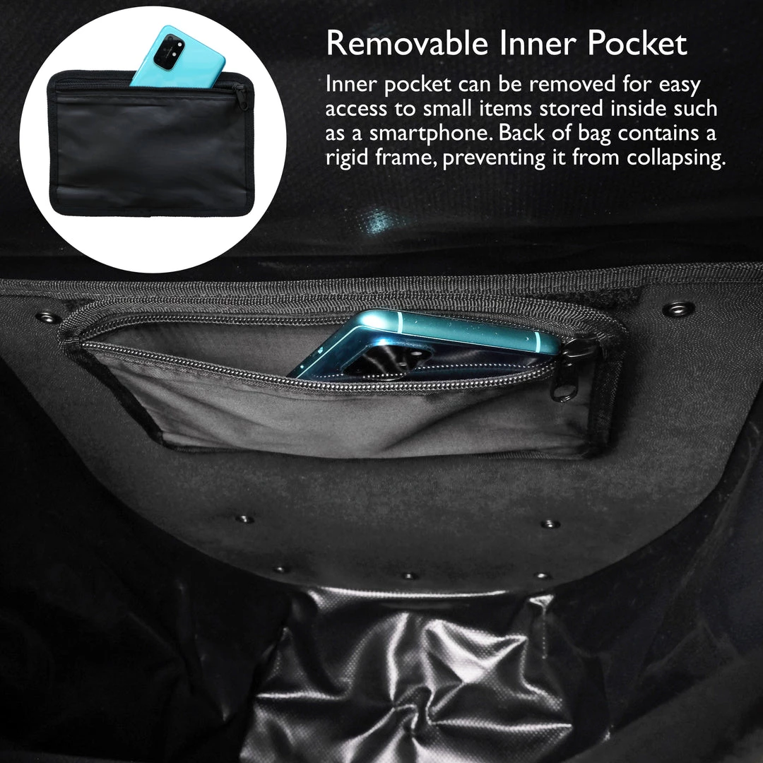 - STRUCTURED BUILD: A firmly padded back of the bag ensures the bag will not get into the bike spokes while riding. Clip on straps provided even more security to the bag when closed to prevent items from falling out