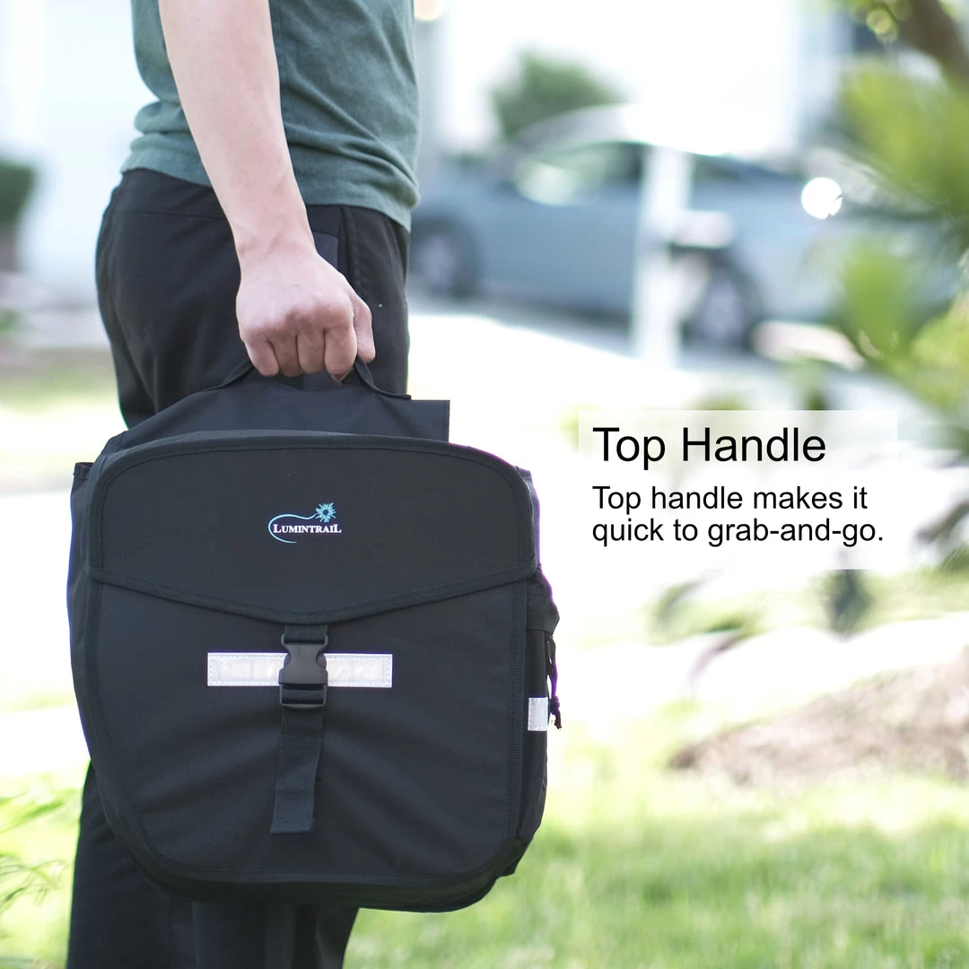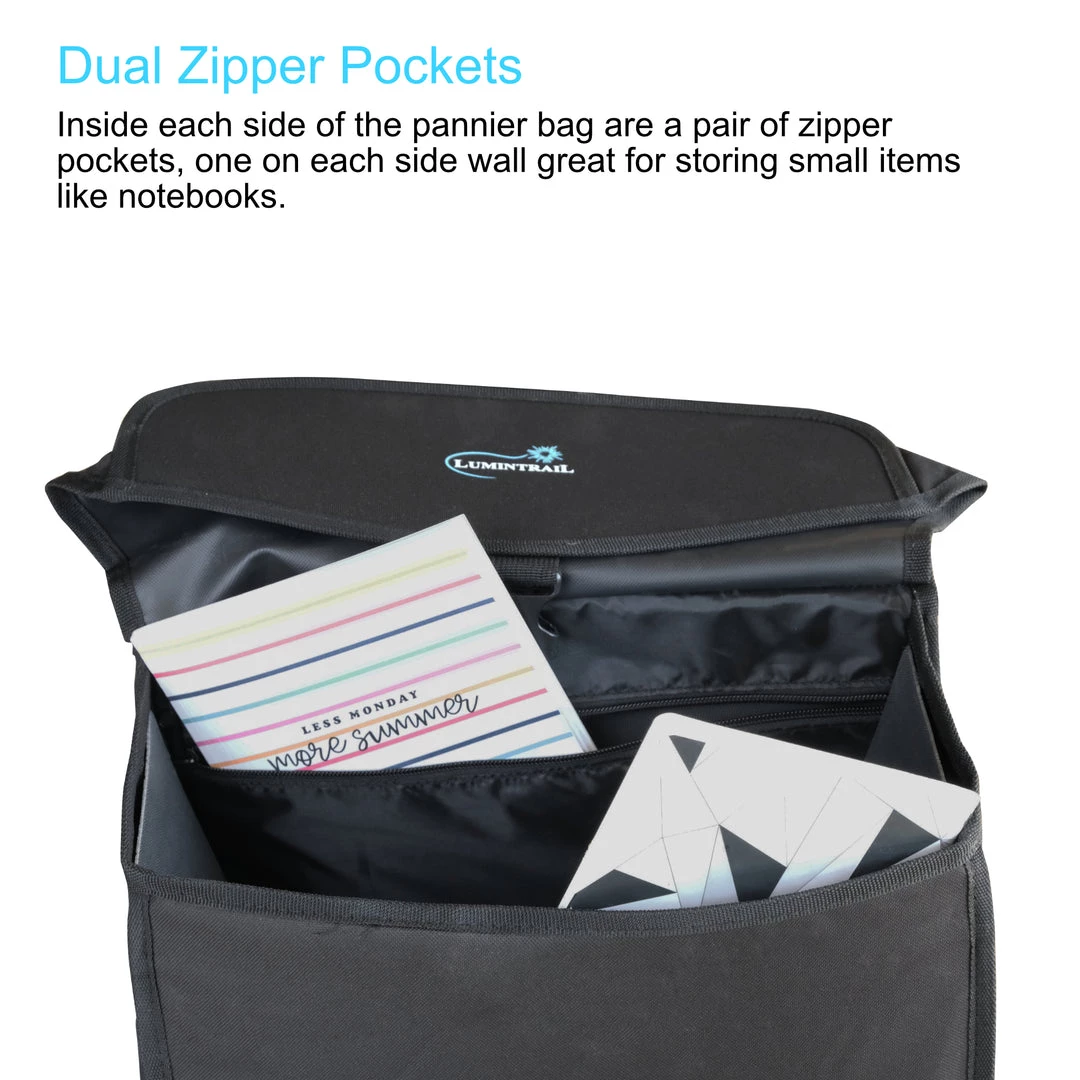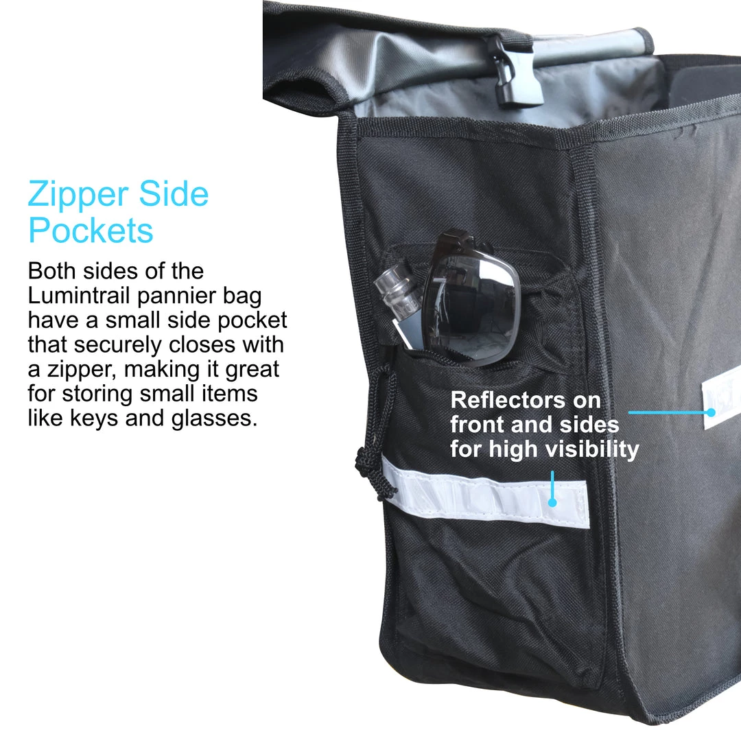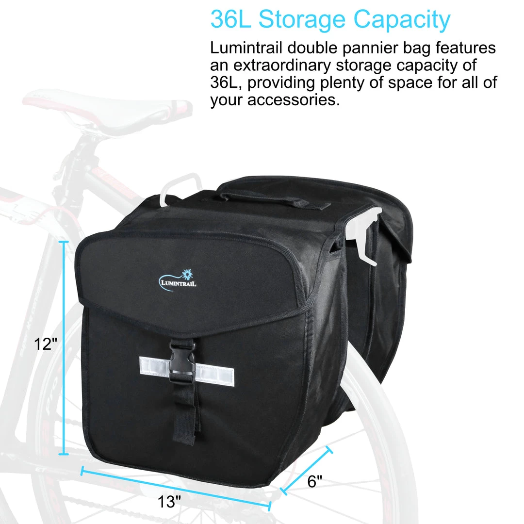 The Lumintrail Double Pannier Bike Bag has a very large capacity at 36L making it great for daily commutes or going to the grocery store.