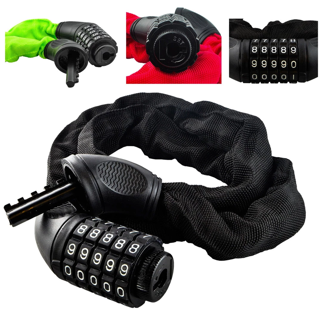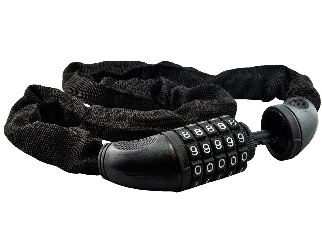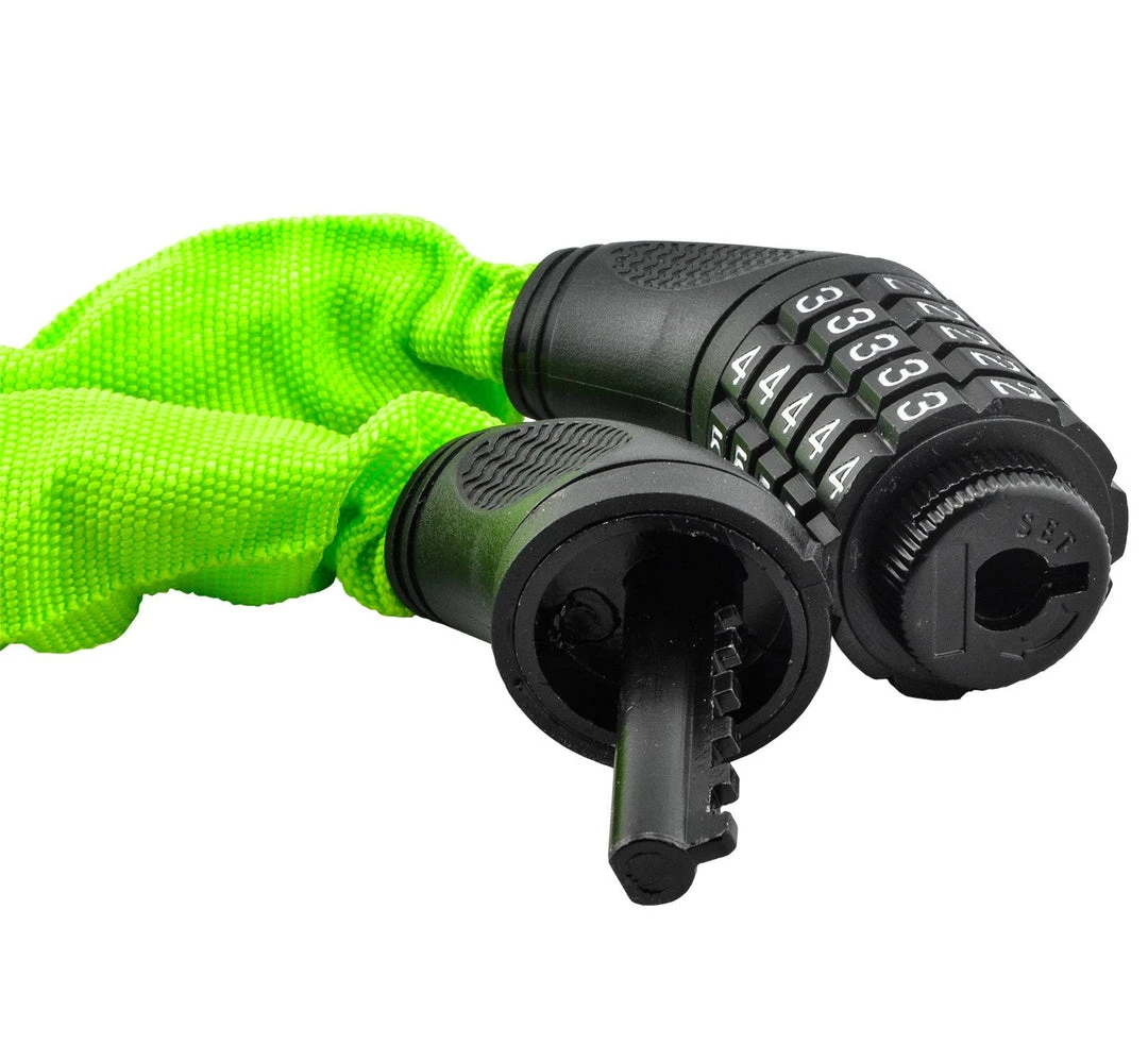 The Lumintrail Steel Coil Combination Chain bike lock is heavy-duty yet lightweight and easy-to-handle. The convenient 5 digit combination means not having to worry about carrying a key. The chain is made of solid steel to prevent theft and comes with a flexible nylon cover to prevent scratching. With a length of 36 inches, it is compact enough to carry in a bicycle tote bag or it can be wrapped around the seat post or handlebars.