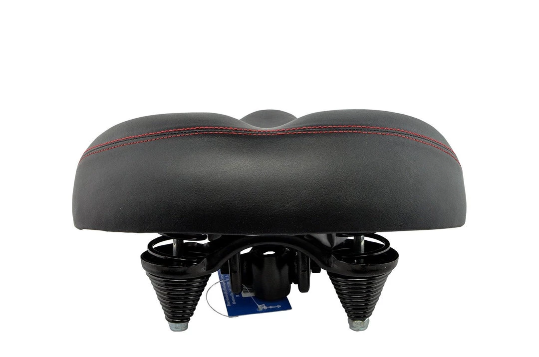 The Lumintrail 10.5″ wide cruiser bicycle seat provides serious comfort to allow for a longer, more enjoyable ride. The over sized seat is designed with comfortable gel padding that conforms to your body shape for a softer ride and has a Coil Spring Suspension to smooth out bumps.