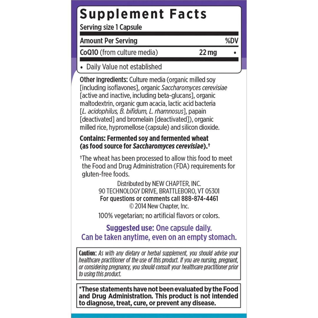 - Clinical Support: Backed by human and in vitro testing, New Chapter fermented CoQ10 demonstrated superior antioxidant activity over chemical isolate form of CoQ10
