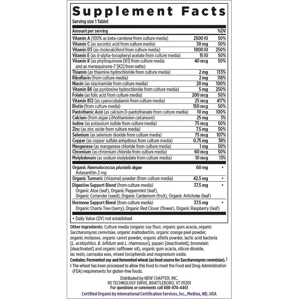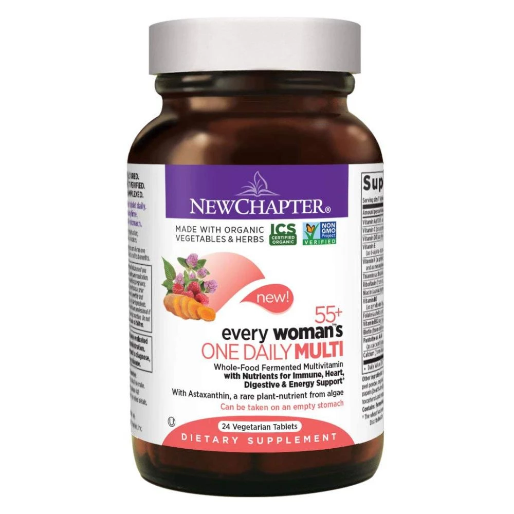 Every Woman’s One Daily 55+ Multivitamin offers eight fermented B Vitamins, fermented Vitamins D3, C and E, clinical strength Astaxanthin harvested from organic Algae, and Aloe. This multivitamin is whole-food fermented, Iron-free, and gentle on your stomach.