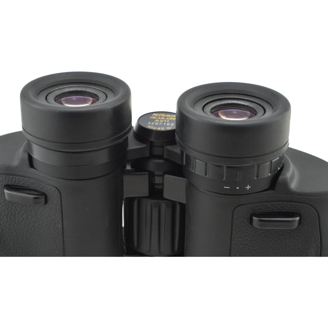 The ACULON A211 10×42 binoculars feature 10-power multicoated lenses and 42mm objectives fabricated with Nikon’s exclusive lead and arsenic-free Eco-Glass. The BaK4 Porro prism systems within all ACULON A211 binoculars deliver a high-quality image under a multitude of lighting conditions, making these binoculars effective from dawn till dusk.