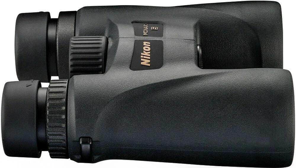The 8×42 Monarch 5 Binocular from Nikon combines fully multicoated optics with a rubber armored fogproof housing to produce the image quality and handling that is characteristic of Monarch series binoculars. This iteration of the Monarch 5 features extra-low dispersion (ED) lens elements that transmit bright images with enhanced color fidelity and contrast. To preserve the image quality of these high-transmission lenses, Nikon also outfitted this Monarch 5 with phase-corrected roof prisms. Using dielectric coatings, these prisms align incoming wavelengths of light and render well-defined edges with lifelike color.