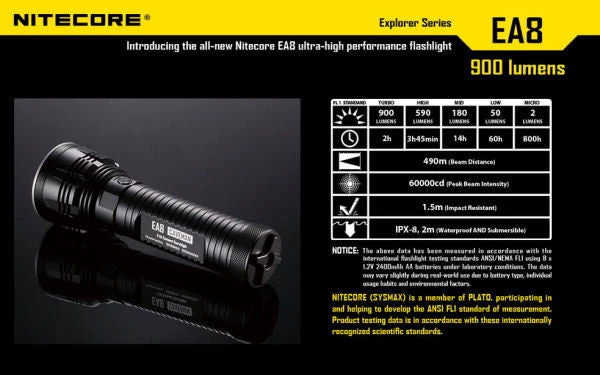 - Turbo: 900 Lumens / 2hrs