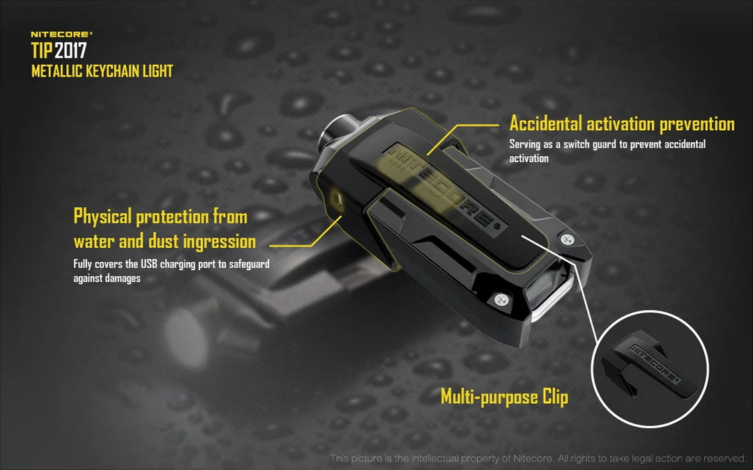 Content in Package: TIP 2017 keychain flashlight, key ring/belt clasp, Multi-purpose Clip