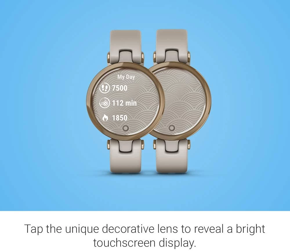 - SMALL, STYLISH, & SMART: This stylish smartwatch is the first of its kind from Garmin with an incredibly small, 34 mm watch case and a stylish patterned lens. Just tap or twist your wrist to reveal the bright touchscreen display.