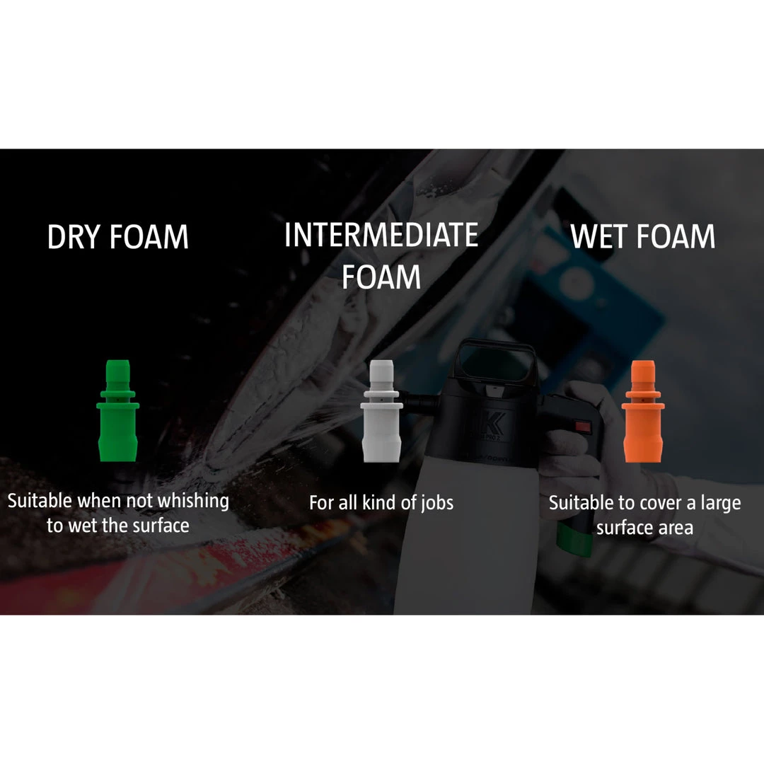 Sprayers specifically manufactured for the generation of dry and long lasting foam. Designed for use with chemical agents with surfactant properties (surface active).