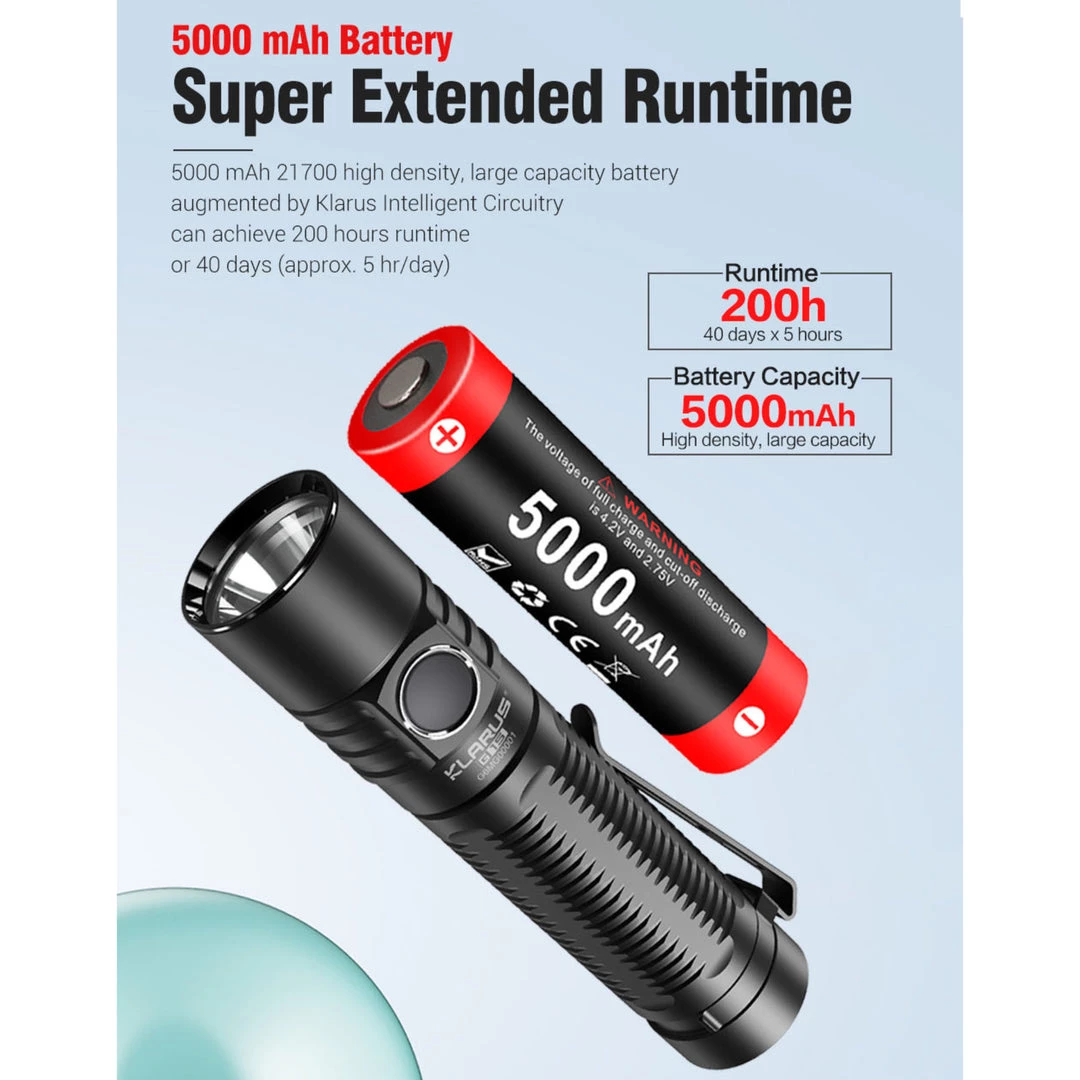 - 5000mAh 21700 Li-ion battery, long-lasting runtime.