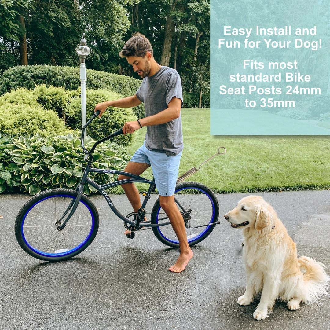 Have some fun exercise with your dog using the bike leash attachment. The unique design provides plenty of clearance for your dog to run while the spring design helps absorb your dog’s pulls and tugs. Includes a dog leash.