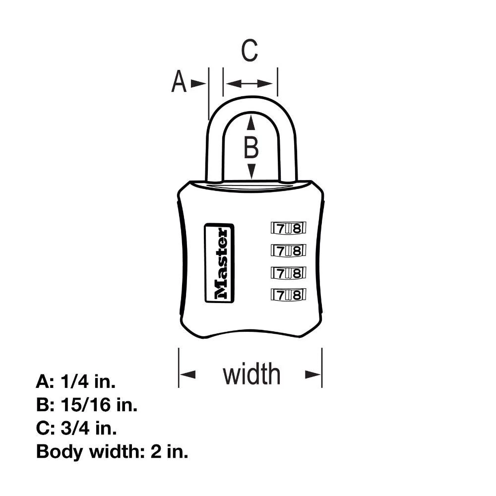 The Master Lock 653D set your own combination padlock features a 2in (50mm) wide metal body for strength and durability. The 1/4in (6mm) diameter shackle is 15/16in (24mm) long and made of hardened steel, offering extra resistance to cutting and sawing. The soft touch bottom and sides provide no-slip gripping. The limited lifetime warranty provides peace of mind from a brand you can trust.