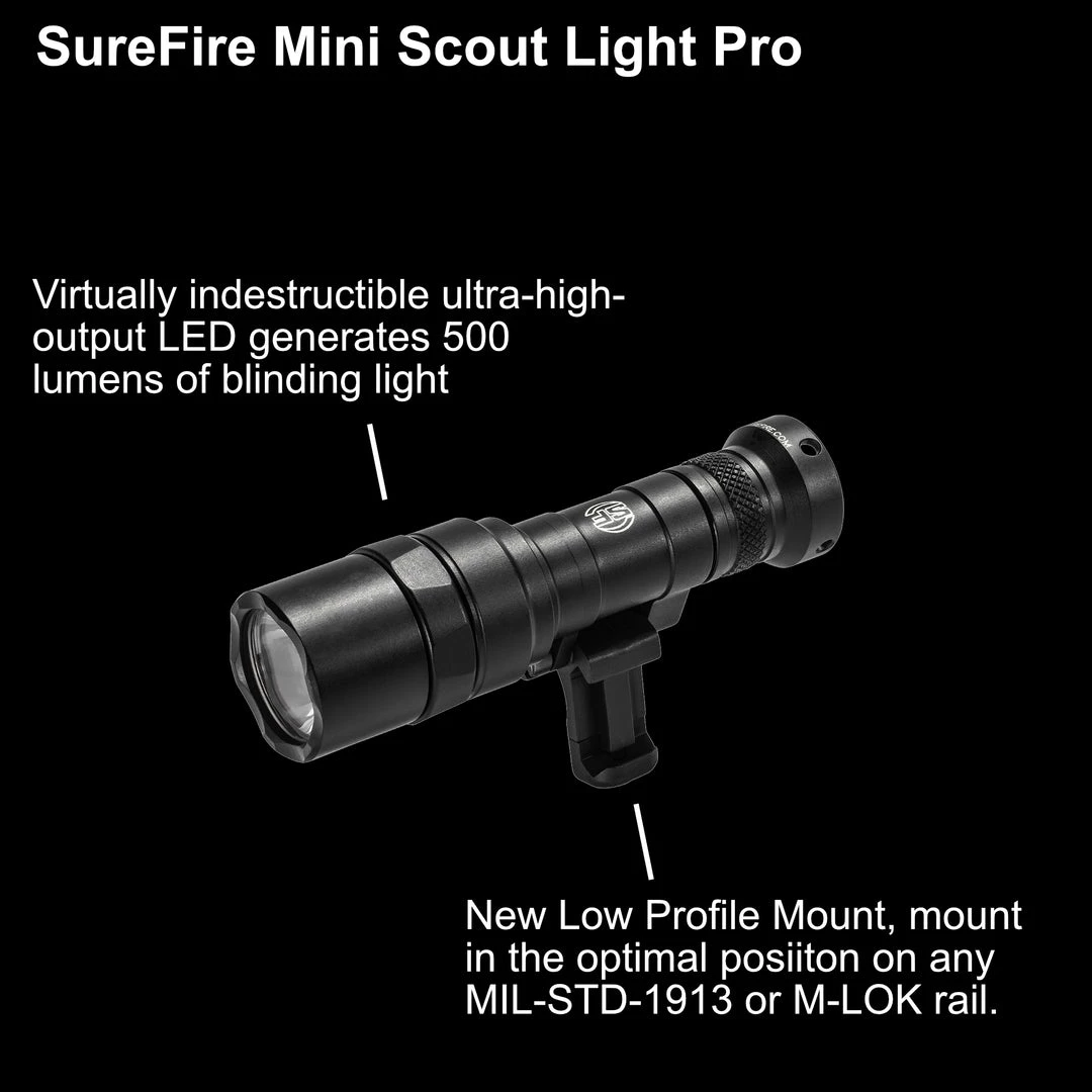 - New SureFire Low-Profile Mount (LPM) greatly enhances versatility, allowing the user to mount the Mini Scout Light Pro in the optimal position on any MIL-STD-1913 or M-LOK rail.