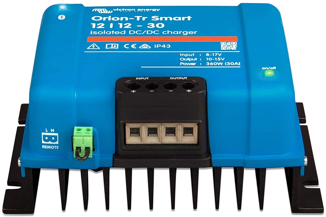 The Orion-Tr Smart DC-DC charger is a professional DC to DC adaptive 3-stage charger with built-in Bluetooth.