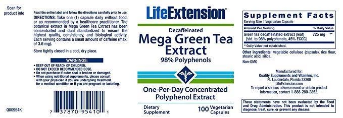 Life Extension Mega Green Tea Extract (Decaffeinated) – 100 Vegetarian Capsules