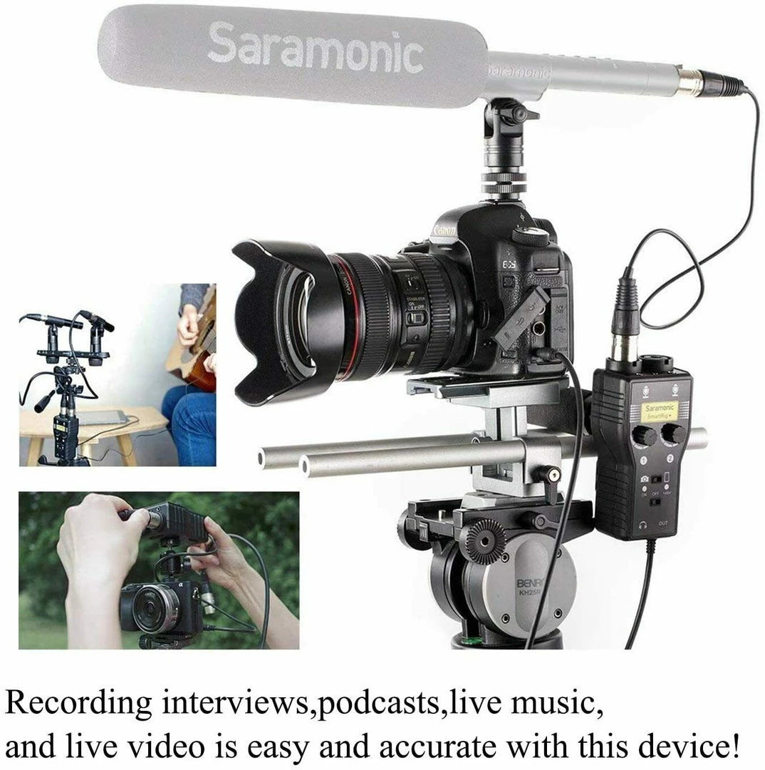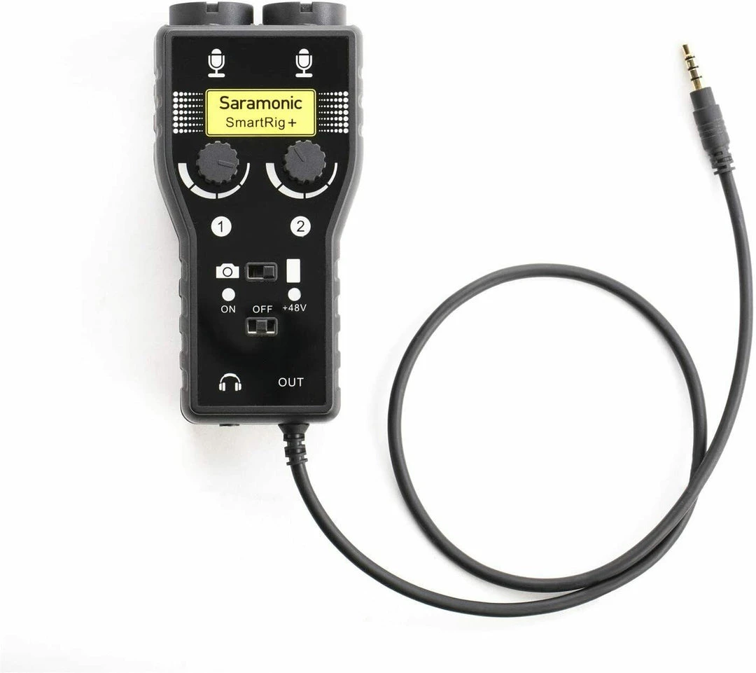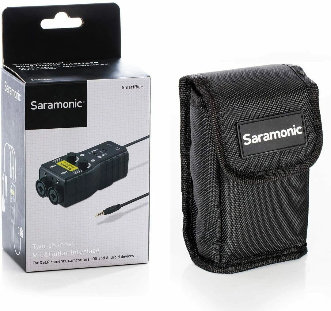 The Saramonic SmartRig+ is a compact 2-channel audio interface that enables you to connect any combination of professional microphones, guitars or instruments to DSLRs and video cameras, as well as iPhones, iPads, iPod Touches and Android devices that feature a headphone jack. It’s an ultra-portable, lightweight device that vastly improves the sound quality of the videos you shoot. It also lets you create broadcast-quality audio recordings on your mobile device for podcasting and news gathering. In addition, you can use powerful music-making apps to their full potential by connecting real instruments and professional microphones to your mobile device.