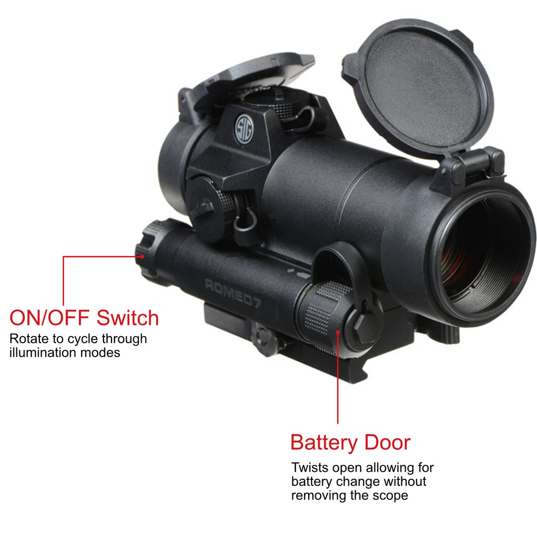 - Sig Sauer 1x30mm Romeo7 Full-Size Red-Dot Sight (Red-Dot Illuminated Reticle, Graphite)