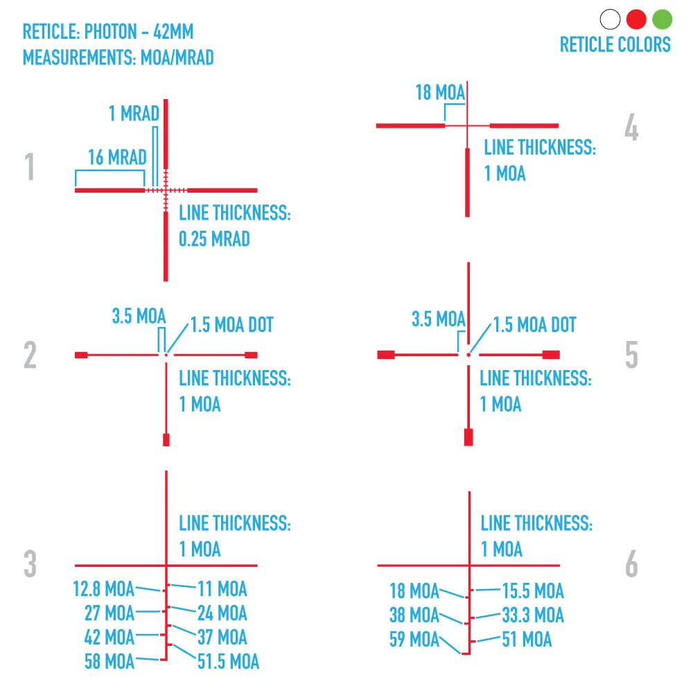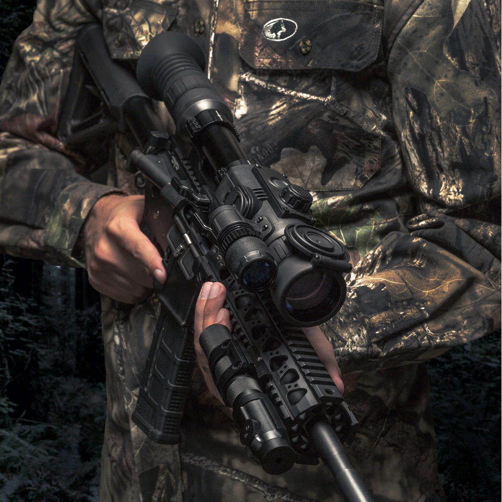Delivering unmatched performance day or night, the revamped photon RT 4.5x42s digital night vision riflescope features an upgraded 768×576 CMOS sensor with 40% higher resolution over the photon XT Series, crisp 640×480 LCD display, built-in video/sound recording and integrated wifi via the stream vision app. Available 2x digital zoom and a built-in 850nm LED IR illuminator allow shooters to hone in on targets up to 220 yards away in total darkness. The scope has 6 reticle options with 4 different colors and boasts a one-shot zero function, making zeroing the photon RT a breeze. Shockproof and IP55 water resistant, the photon RT also offers an additional Weaver rail for accessories and a power input that works with power Banks via microusb. The photon RT works with most aftermarket 30mm rings and includes carrying case, user manual, USB cable, spare battery container, battery container pouch and lens cloth. Features: – wifi remote view via Pulsar stream vision – built-in video/sound recording – one-shot zero function – high resolution 768×576 CMOS sensor – 6 reticle options with 4 colors – power input includes: – carrying case – user manual – USB cable – spare battery container – battery container pouch – lens cloth specifications: – type of sensor: CMOS sensor – sensor resolution, pixels: 768×576 pixels – display type: LCD – display resolution, pix.: 640×480 pix – built-in video Recorder availability: yes – built-in memory, GB: 8 GB – video clip, format: AVI – video clip, resolution: 320×240 or 640×480 – format of photo files: JPEG – resolution of photo files: 320×240, 640×480, 1280×960 – memory capacity: approximately 5 hours. Body Material – Glass-nylon composite and metal