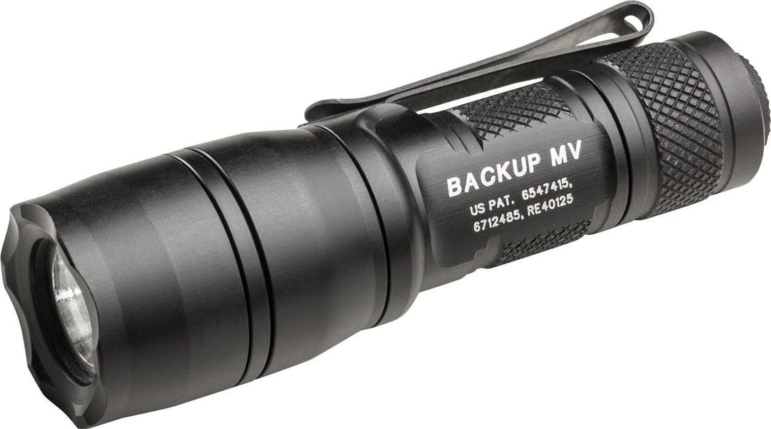 The sleek, ultra-compact E1B-MV is part of our best-selling Backup line, originally developed as backup lights for law enforcement pros. This outstanding everyday-carry light sets itself apart from the rest of the Backup family with its broad, useful MaxVision Beam™, created by a special faceted reflector that shapes the LED’s light into a smooth, seamless wall of light that’s perfect for closer-range applications and maintaining situational awareness. The E1B-MV uses a single 123A disposable battery to power this field-of-vision-optimized beam at two useful outputs—400 and 5 lumens—and is programmed to lead with high output light. Everything else about the E1B-MV is pure Backup, including its hard-anodized aluminum body, smooth styling, tailcap push-button switching, lockout tailcap, and two-way pocket clip that allows for bezel-up or -down carry.