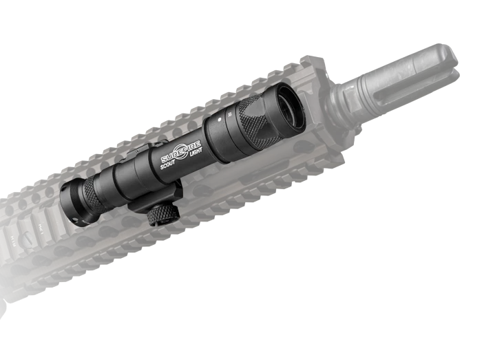 The compact M600V Scout Light produces 350 lumens of brilliant white light or 120 milliwatts of invisible infrared output for use with night vision devices—with no need for IR filters or spare lamps; attaches to Picatinny rail with a thumbscrew. To switch between white light, disable, and infrared modes you simply pull then twist the front knurled portion of the bezel. In either mode, the M600V’s TIR lens produces a tight beam suited for short- to medium-range applications. The high-efficiency LEDs are virtually immune to failure since there’s no filament to burn out or break. Comes with a momentary/constant-on pushbutton tailcap switch.The M600V clamps solidly to any long gun equipped with a Picatinny rail via its integral thumbscrew rail clamp. Constructed of high-strength aerospace aluminum with Mil-Spec hard anodizing for superior toughness and corrosion resistance, and optically coated tempered glass for durability and maximum light transmission, the M600V is O-ring sealed to keep out dust, dirt, and moisture. Battle-proven and built to withstand the rigors of combat.