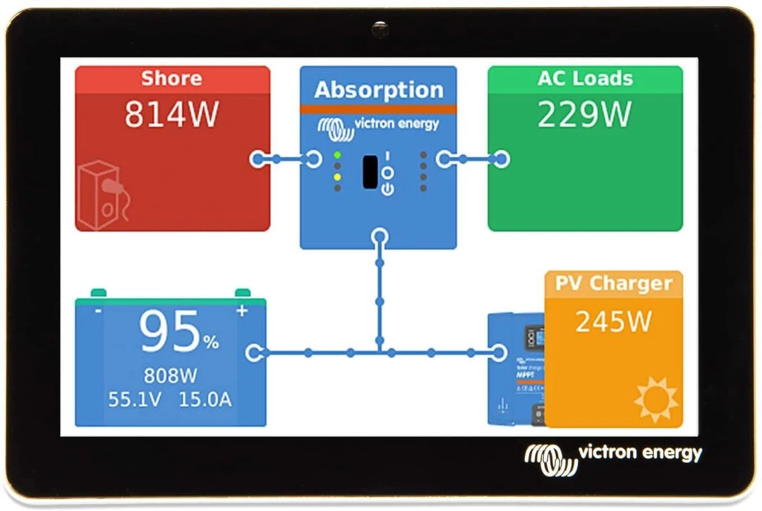 The GX Touch 50 and GX Touch 70 are display accessories for our Cerbo GX. The five inch and seven inch touch screen displays give an instant overview of your system and allow to adjust settings in the blink of an eye. Simply connected to the Cerbo GX with one cable, Their super slim waterproof design, top-mountable setup and simple installation bring a lot of flexibility when creating a crisp and clean dashboard.